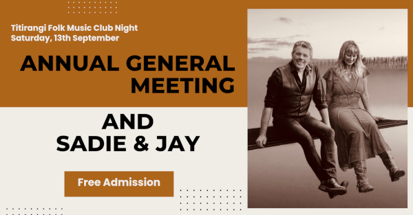 Wielding guitars, bouzouki, banjo & double bass, Sadie & Jay return to Titirangi Folk Club to perform their highly original music greatly inspired by the Australian & Kiwi experience.